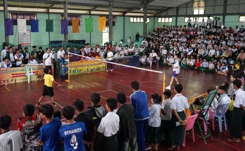 ကော့သောင်းမြို့နယ်၊ အခြေခံပညာကျောင်းပေါင်းစုံအမျိုးသား/အမျိုးသမီး ကြက်တောင်ရိုက်ပြိုင်ပွဲ ဗိုလ်လုပွဲနှင့်ဆုချီးမြှင့်ပွဲအခမ်းအနားကို ယမန်နေ့မွန်းလွဲပိုင်းက ကော့သောင်းမြို့၊ ရန်ကြီးအောင်အားကစားကွင်း၊ ကြက်တောင်အားကစားရုံတွင် ကျင်းပပြုလုပ်သည်။
